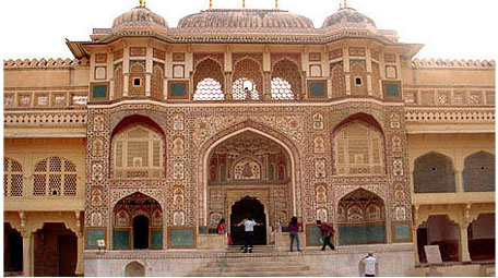 Amber Fort is located in Amer (a town with an area of 4 square kilometres (1.5 sq mi)), 11 kilometres (6.8 mi) from Jaipur, Rajasthan state, India. It is one of the principal tourist attractions in the Jaipur area, located high on a hill.Amber Fort was built by Raja Man Singh I. Amber Fort is known for its artistic style, blending both Hindu and Rajput elements. With its large ramparts, series of gates and cobbled paths, the fort overlooks the Maota Lake, at its forefront.